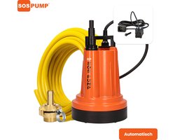 Op zoek naar een krachtige en betrouwbare dompelpomp voor wateroverlast of leegpompen van ruimtes? De SOSPUMP dompelpomp is een vlakzuigende pomp die water wegpompt tot slechts 2mm restwater. Ideaal voor het leegmaken van kelders, garages, zwembaden, vijvers en bouwplaatsen. Dankzij de sterke pompcapaciteit van 5000 liter per uur en de meegeleverde 25 meter lange tuinslang ben je direct klaar voor gebruik.