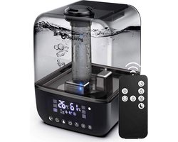 Een te lage luchtvochtigheid is slecht voor de gezondheid van mensen en dieren. Bij een aanhoudende zeer droge binnen lucht zullen ziektes ontwikkelen in de ademhalingswegen. Ook voor planten, meubels, parketvloeren en antiquiteiten kan uitdroging zeer schadelijk zijn.In het systeem van de luchtbevochtiger zit een aroma-ring. Hier kunnen druppels van laventel, pepermunt of enig ander etherische olie hun werk doen. De ring zal er voor zorgen dat de nevel uit de luchtbevochtiger ruikt naar de betreffende geur.Gemakkelijk te bedienen door middel van een afstandsbediening en een LCD-scherm.Optimale luchtbevochtigingDe UpLiving bevochtiger heeft een capaciteit van 260ml/h met een tank van 4.5L. Dit is ideaal voor kamers zoals de woonkamer, computerkamer en de slaapkamer.Automatische bevochtigingDe luchtbevochtiger beschikt over 3 standen tussen 40% en 90%. Als er een stand gekozen is zal de luchtbevochtiger naar dit percentage toe werken. Op het moment dat het gewenste percentage bereikt is, begint de luchtbevochtiger weer te werken als de relatieve vochtigheid ongeveer 2% onder de ingestelde vochtigheidswaarde zakt.SlaapmodusDeze modus is speciaal ontworpen om tijdens het slapen een optimale nachtrust te realiseren. het LCD-scherm zal zichtzelf uitschakelen en het geluidsniveau zal verminderen. Kinder-slotKinderen houden er nogal van om overal aan te zitten. Daarom hebben wij een kinderslot op onze luchtbevochtiger. Op het moment dat het kinder-slot ingeschakeld is, kunnen er instellingen veranderd worden. Je zult dus geen zorgen hoeven te maken om een verandering in de instellingen als je even niet oplet.Specificaties✓ Capaciteit 4.5L✓ Aromatherapie✓ 1.5KG✓ 30W✓ 100v-230v (oplader)✓ 19 cm x 18,5 cm x 28 cm✓ Bevochtiging tussen 40%-90%Verkoop door UpLivingWij vinden dat kwaliteit voorop moet staat. Daarom zijn al onze producten CE, FCC/GS en RoHs gecertificeerd.